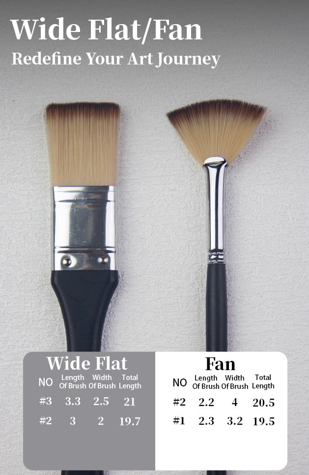 Our premium synthetic fibres offer exceptional pigment-holding capacity and a smooth, controlled release of colour. The bristles feel soft yet maintain reliable spring, making them ideal for blending, shading, glazing, and creating fluid transitions. They resist fraying, splitting, and wear—even with frequent rinsing—ensuring dependable performance over time.