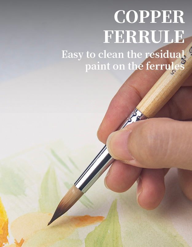 Each brush is assembled with double-crimped corrosion-resistant metal ferrules that secure the bristles firmly in place. The tight, seamless construction prevents wobbling, shedding, or loosening, even after repeated painting and cleaning sessions. Your tools stay solid, balanced, and ready for precise work every time you reach for them.